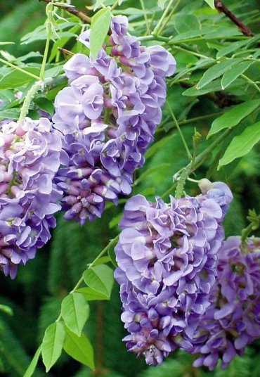 2-2,5 cm boyundaki mor renkli çiçekler güzel kokuludur ve 15-30 cm boyunda sarkık salkımlar oluştururlar.Hoş kokulu çiçekleri vardır.